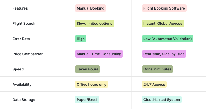 Comparison: Manual Workflow vs Flight Booking Software